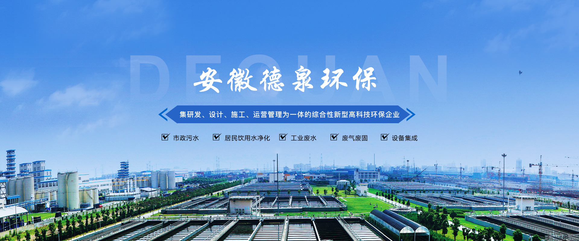 安徽德泉環保科技有限公司致力于廢水、廢氣、固廢技術處理研發、設計、施工及運營管理,從事環保設備及設施的制造和銷售,為環保項目系統提供專業的技術咨詢和服務。是一家集建筑勞務分包,工程總承包(EPC)、項目投資(BOT/PPP)、運營管理(O&M)于一體的綜合性新型高科技企業。